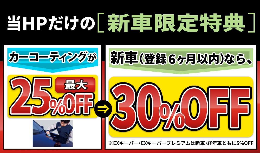 ※EXキーパー・EXキーパープレミアムは、新車・経年車ともに5%オフとなります。