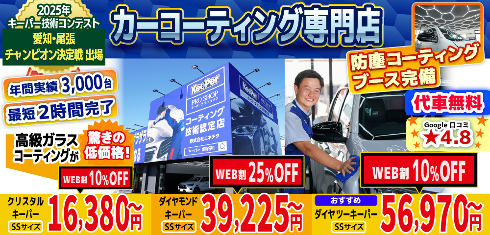 私達キーパープロショップは、東海市・大府市・名古屋市南区・緑区エリアのカーコーティング専門店として、