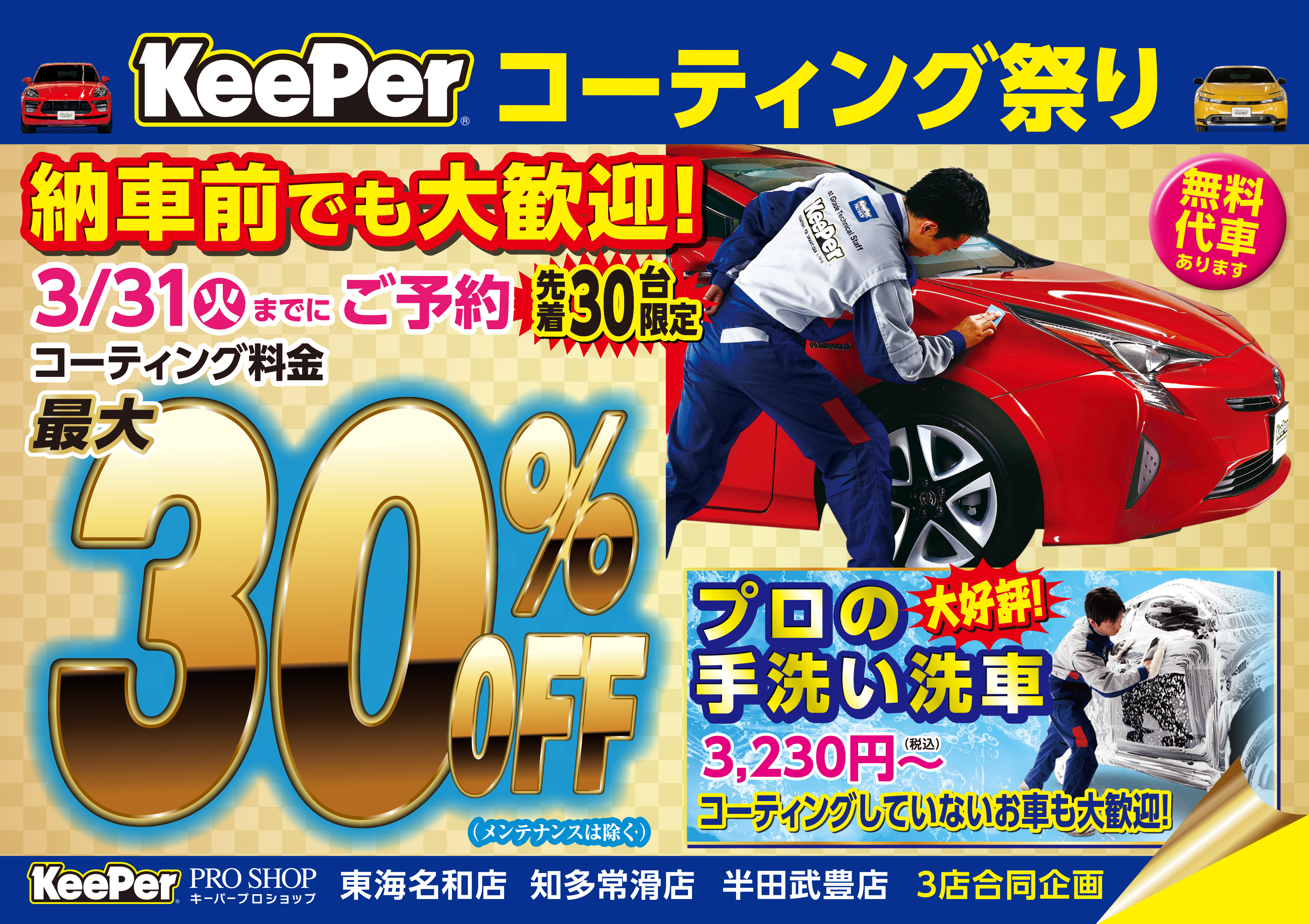 そういった東海市・大府市・名古屋市南区・緑区エリアのお客様の声にお応えして、当店でコーティングを実施頂いたお客様には、無料代車レンタルを始めました!